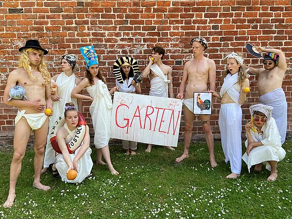 Studierende der Hochschule für Musik und Theater Rostock durchstreifen die Gärten der Vergangenheit und nehmen die Zuschauer:innen auf humorvolle Weise mit in eine mögliche Utopie, in der die Frauen die Welt regieren. Gelebtes Chaos trifft auf den Sehnsucht nach Liebe, Schnitzel mit Pommes, Heimat, damals und einen friedvollen Morgen.